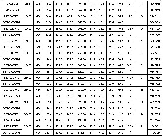 二、卧式及立式新风机组参数(BFP卧式及立式空调机组)