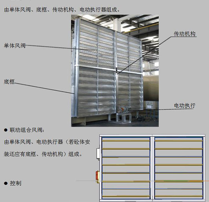 2)安装工序流程:底框组装→单体风阀→传动机构→执行器安装→预调试→各种附件→试车。