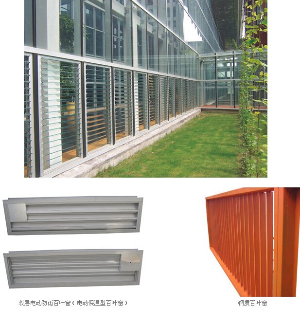 双层防雨调节百叶窗用于需通风防雨、隔热保温调节气流的机房或其他公众场合,它是由带集水沟的防雨叶片和带滴水框的侧框架组成,它不仅具有单层防雨百叶窗的优点,而且工作人员还能根据室内的温度或通风量的需求,去调节百叶窗的开度。百叶窗调节灵活、可靠,常年运行无需加油润滑,无噪音,密封性能良好。