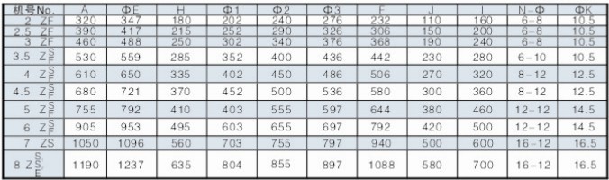SJG、FSJG型斜流式风机安装尺寸及外形尺寸